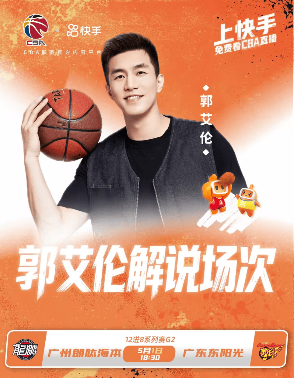 不仅G1如此,广州与广东的系列赛G2回到广州主场,郭艾伦仍不会去现场支持队友,而是继续解说比赛赚外快,只不过G2解说的场次终于是广州VS广东了。